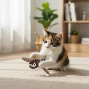Dieses Vogelspielzeug gibt meiner älteren Katze jeden Tag etwas zum Jagen. Er folgt der Musik und will immer wieder spielen, was mich glücklich macht.