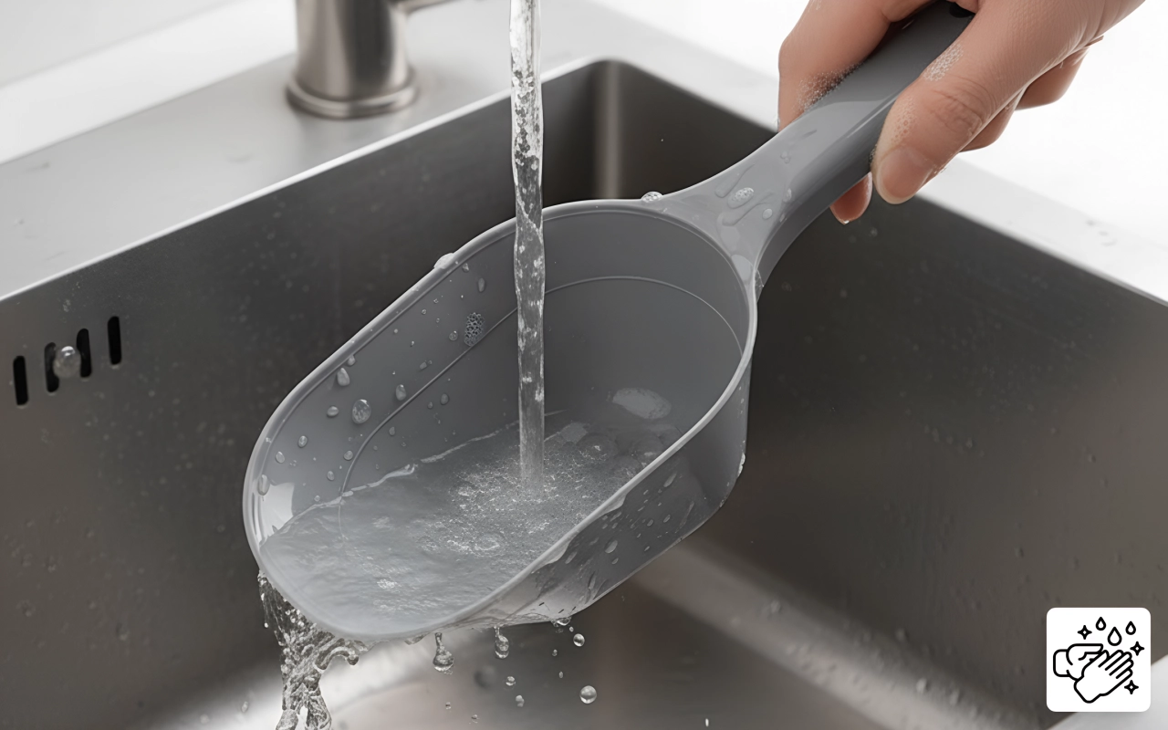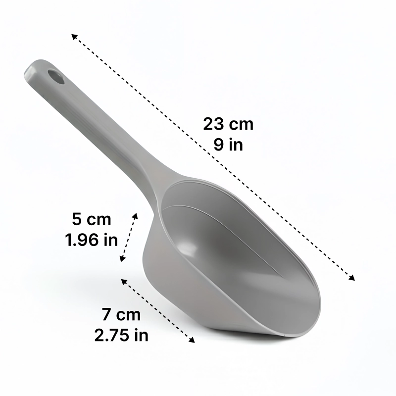 Das Füttern wird zum Kinderspiel! Die Schaufel ist groß genug für einen großen Napf und das Abwaschen geht ganz schnell. Sehr zu empfehlen für stressige Morgen.
