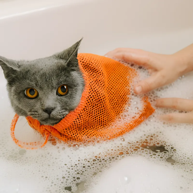 Meine Katze zu waschen war früher ein Kampf, aber dieser Netzsack hat es viel einfacher gemacht. Sie konnte mich nicht kratzen und wirkte ruhig.
