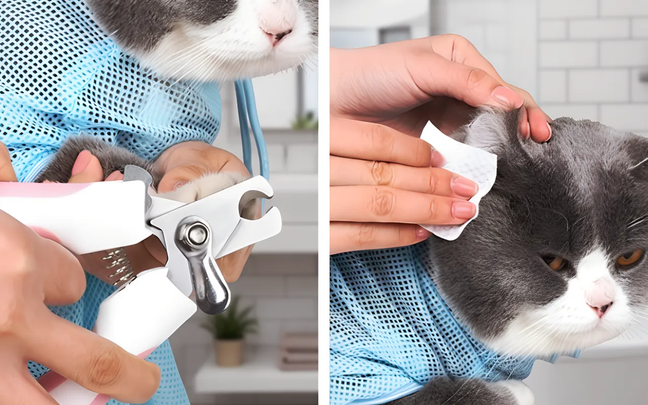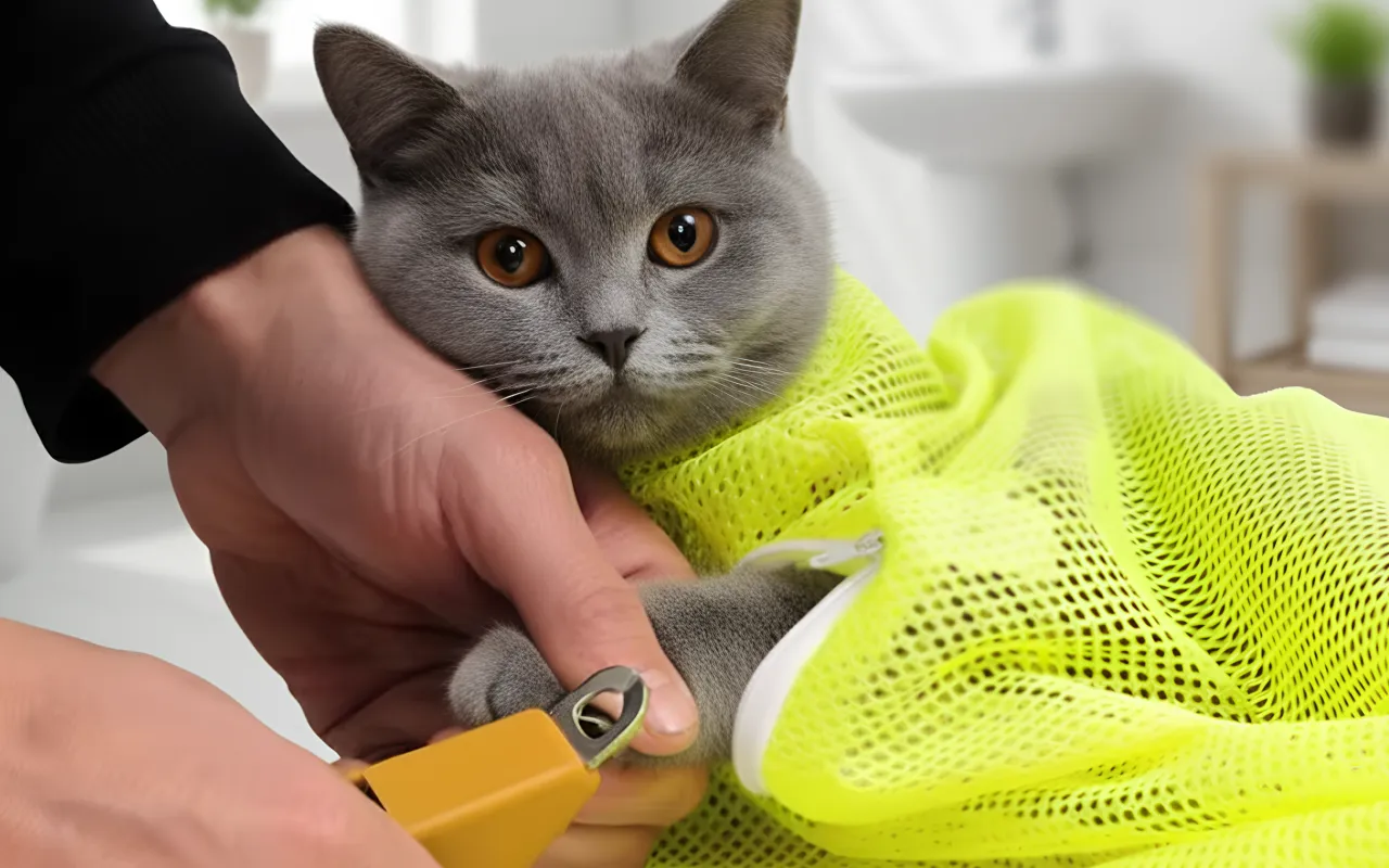 Netz-Katzenpflegetasche zur Fixierung beim Waschen und Krallenschneiden