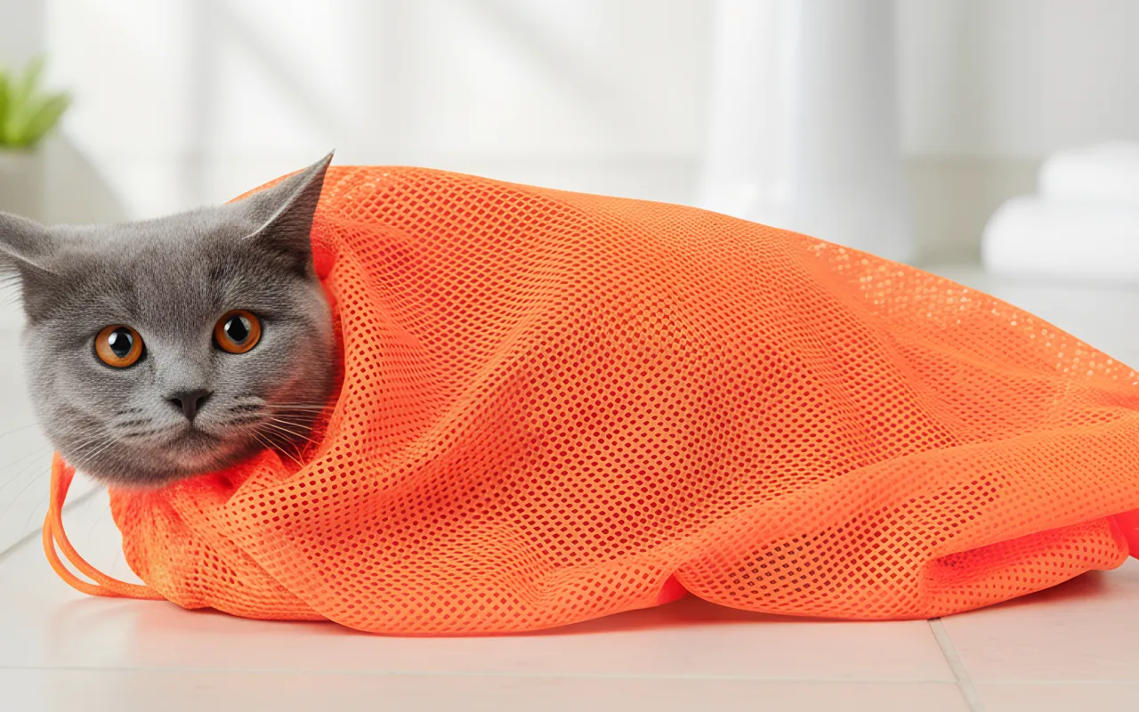 Netz-Katzenpflegetasche zur Fixierung beim Waschen und Krallenschneiden