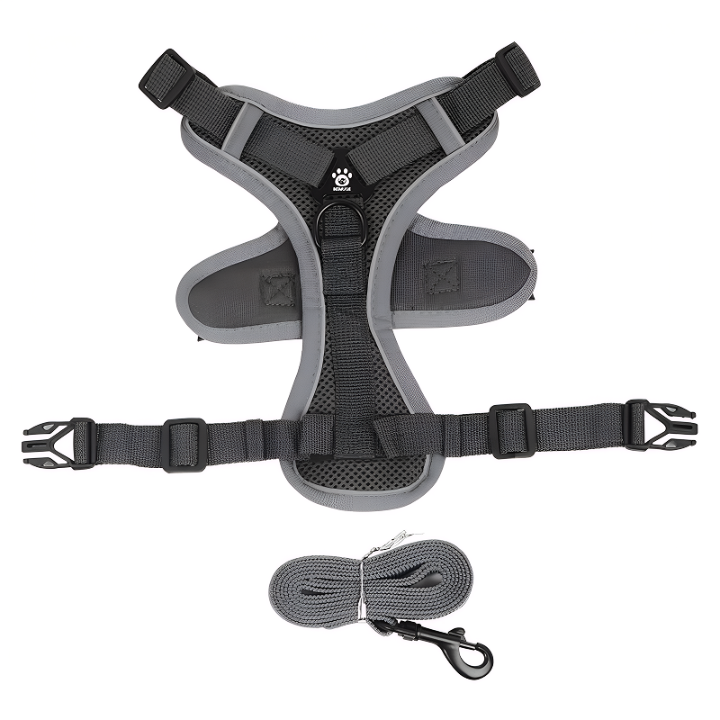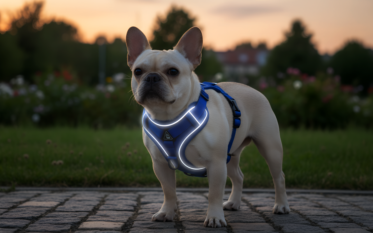 Jeder Spaziergang fühlt sich sicher an. Die Leine ist robust, die Schnallen halten fest und die Nähte leuchten, sodass uns Autos nach Einbruch der Dunkelheit sehen können. Sehr zu empfehlen für belebte Wohngegenden.