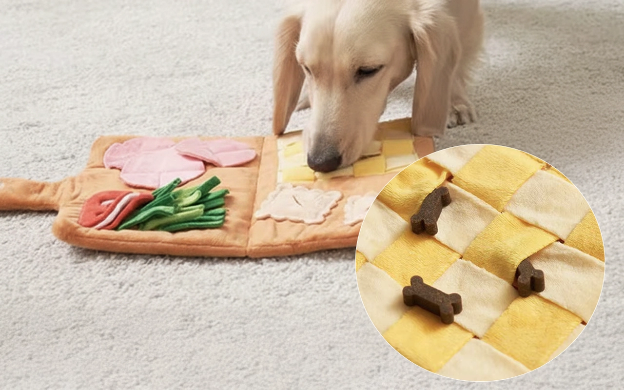 Unser Beagle hat riesigen Spaß daran, sein Futter in den flauschigen Stoffstreifen zu finden. Er schlingt das Essen nicht mehr, was seinem Bauch hilft. Absolut empfehlenswert!