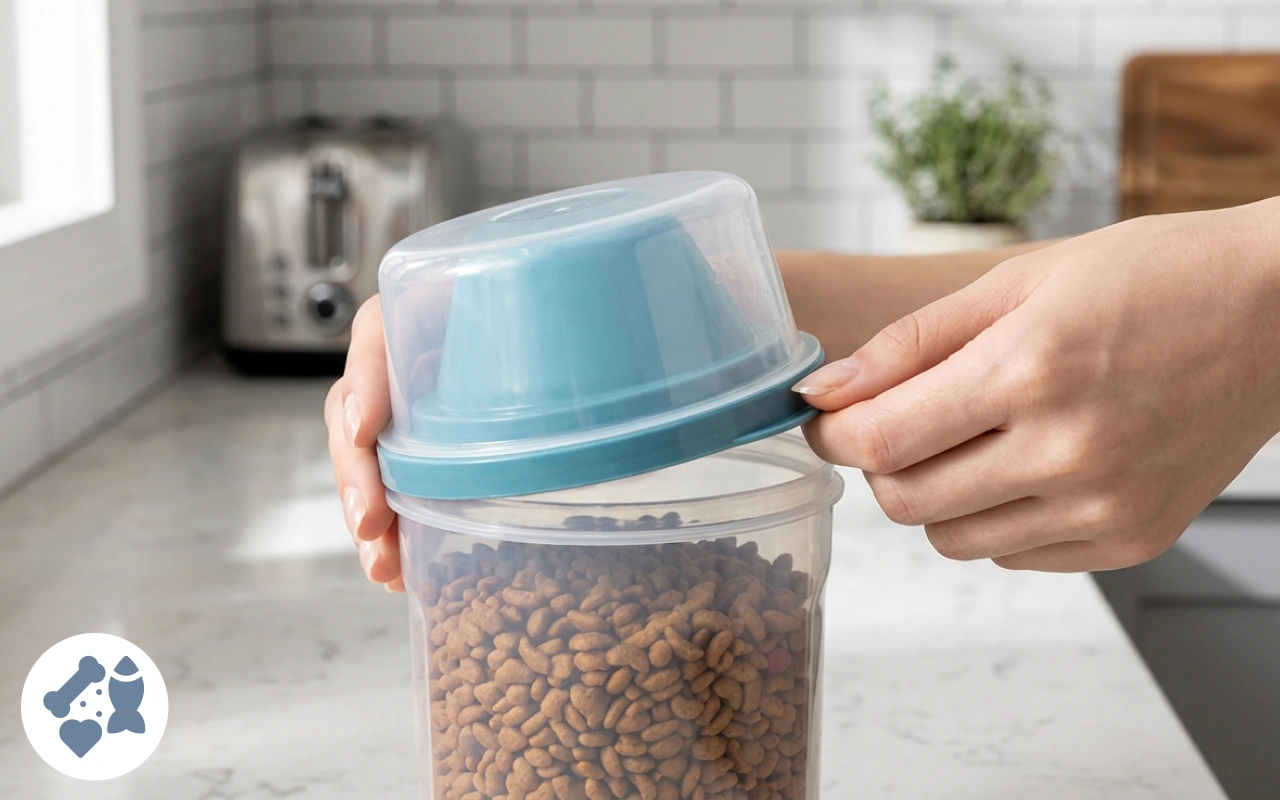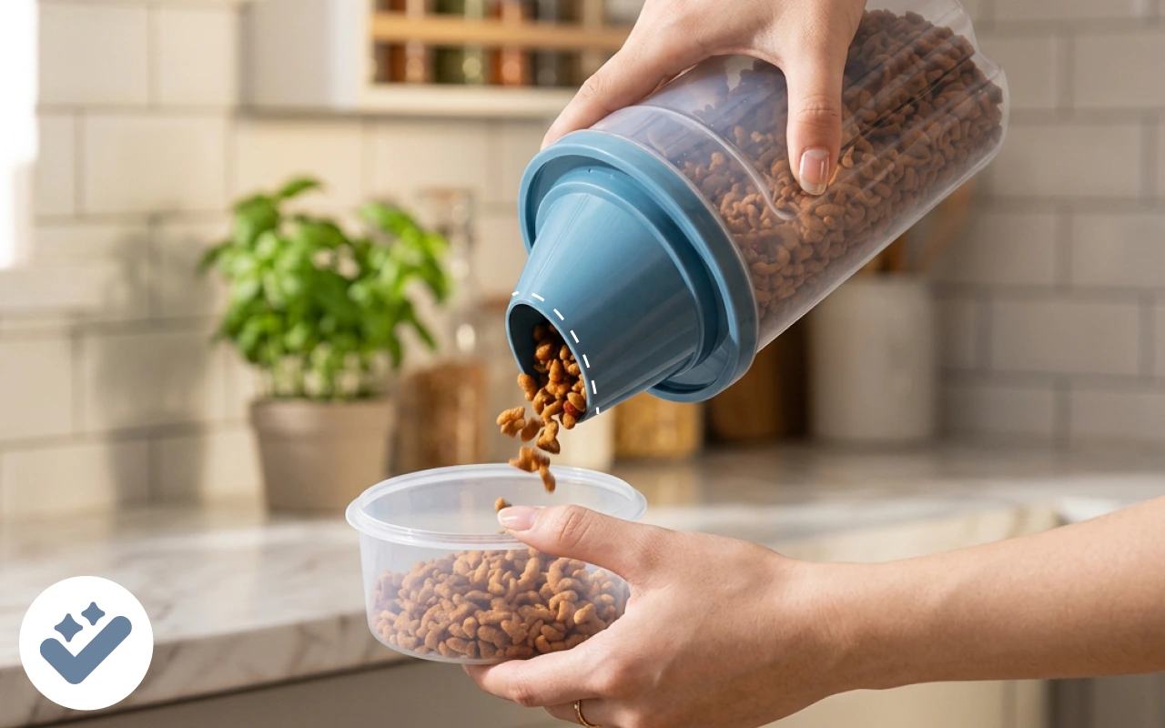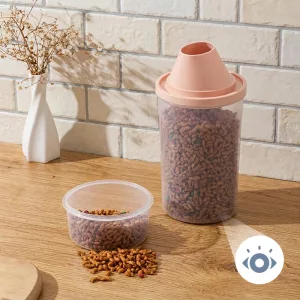 Das Futter bleibt selbst in unserer feuchten Küche knusprig. Ich liebe das einfache Öffnen und Schließen, und es passt perfekt in die Speisekammer.