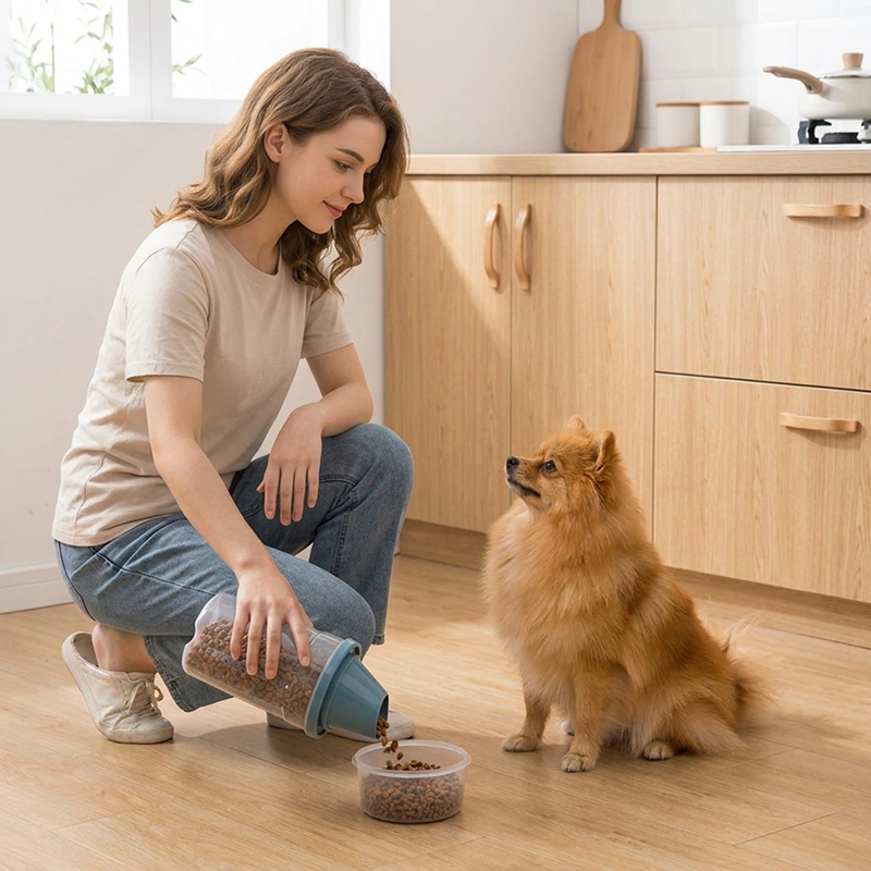 Ein dichter Verschluss schützt das Futter vor Feuchtigkeit, sodass jeder Bissen knackig bleibt. Ihr Haustier genießt gesunde Mahlzeiten ohne Abfall oder Nässe.