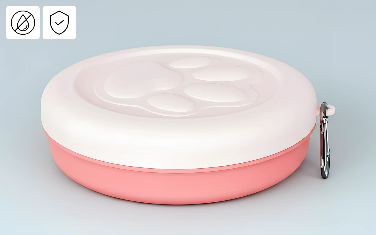 Der verschlossene Deckel verhindert Auslaufen und hält den Inhalt stets frisch. Haustiere bekommen bei jedem Ausflug saubere Portionen.