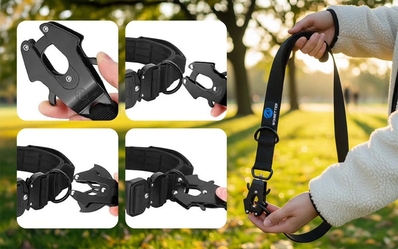 Schnellverschluss-Clip verbindet oder trennt sich in Sekunden. Kein Kampf in dringenden Momenten oder beim Einsteigen ins Auto.