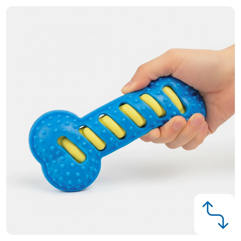 Das Kauen auf der strukturierten Oberfläche massiert sanft das Zahnfleisch und entfernt Rückstände. Frischer Atem und saubere Zähne werden für dein Haustier ganz einfach.
