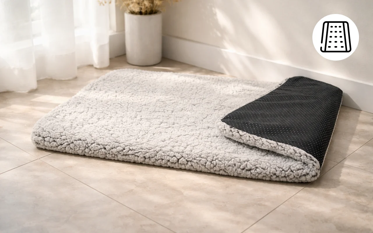 Die stabile Unterseite verhindert das Verrutschen auf Fliesen- oder Holzböden. Haustiere bleiben sicher, auch wenn sie sich ausstrecken oder die Position wechseln.