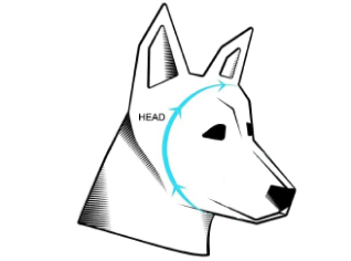 - Legen Sie das Maßband waagerecht um den Kopf Ihres Hundes, direkt um die Augen herum.