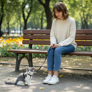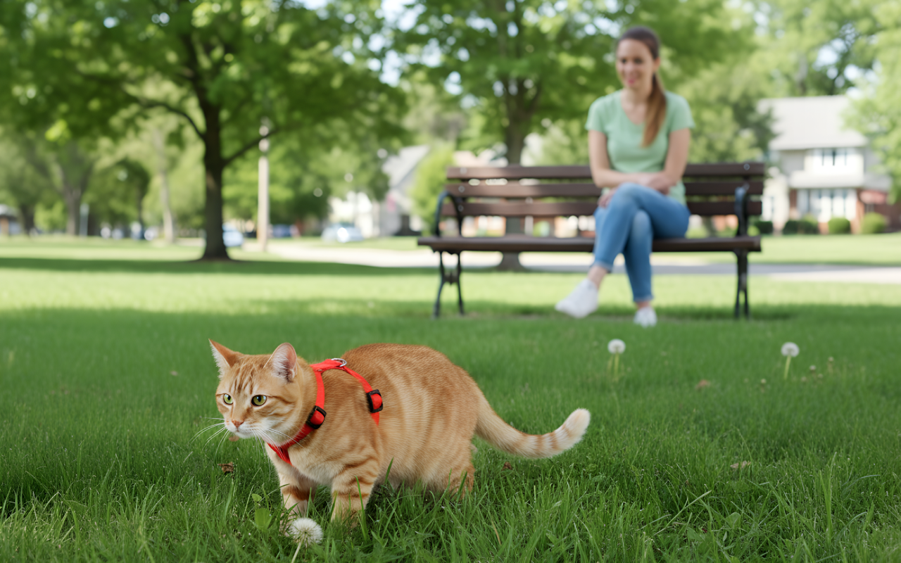 Meine Katze hat Geschirre früher gehasst, aber dieses ist weich und er toleriert es stundenlang. Wir genießen Spaziergänge und treffen andere Tiere im Park.