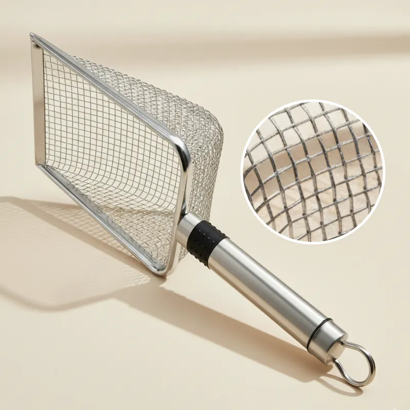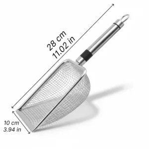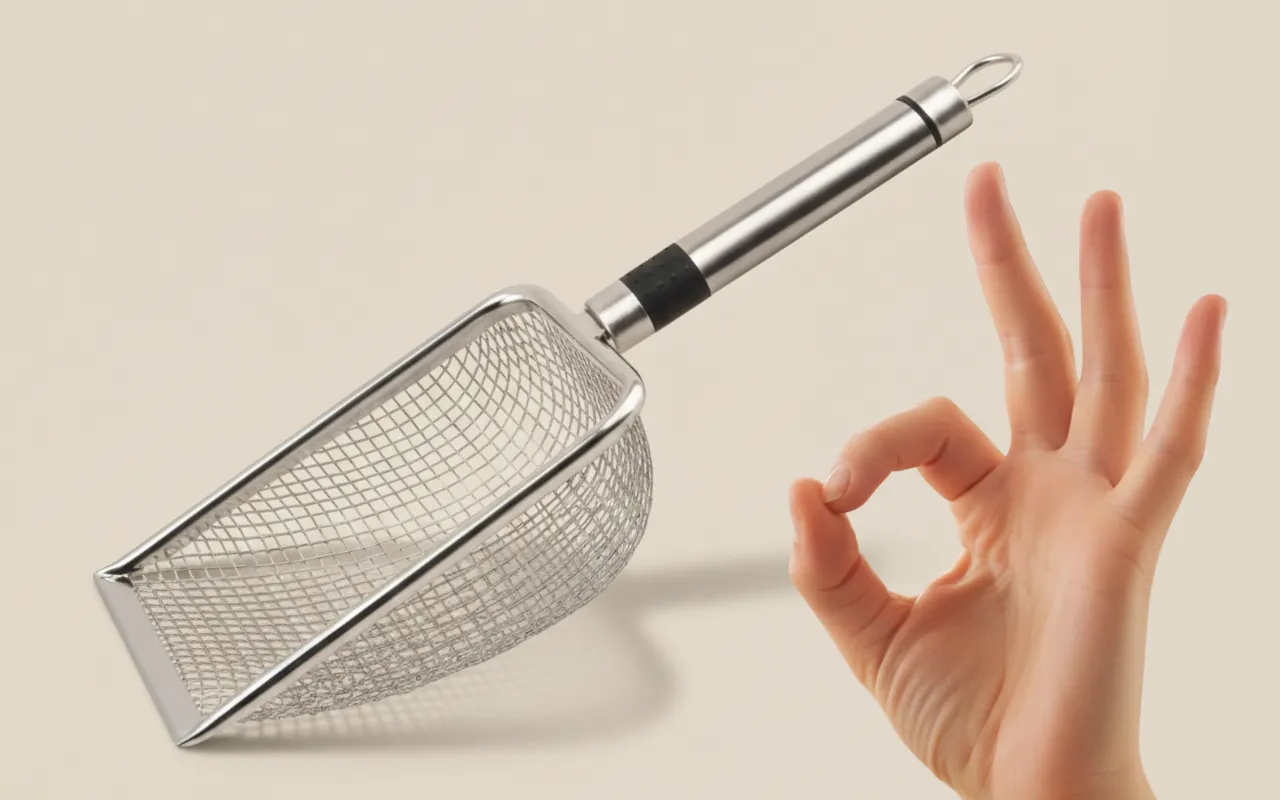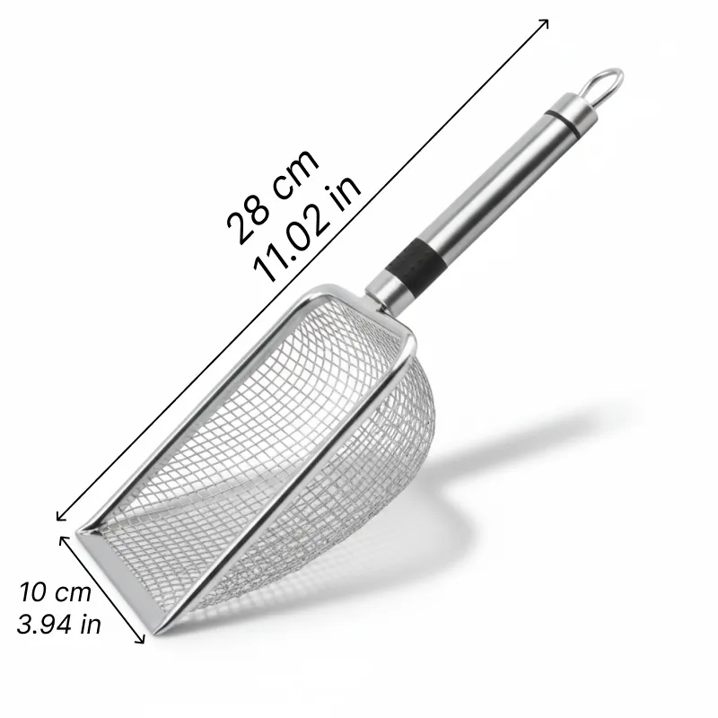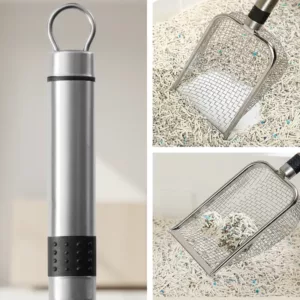Glatte Metalloberfläche verhindert, dass Schmutz haften bleibt. Die Hände bleiben sauber und Gerüche verschwinden schnell aus dem Katzenklo-Bereich.