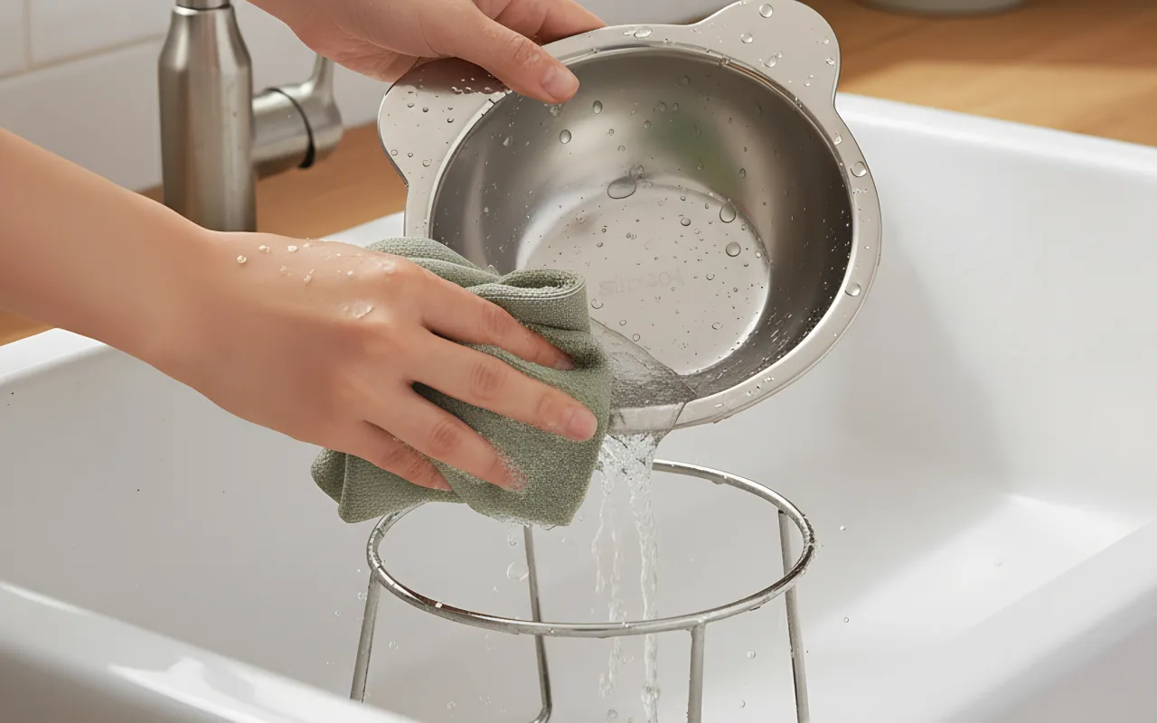Edelstahl widersteht Flecken und ermöglicht eine mühelose Reinigung jeden Tag. Keine unangenehmen Gerüche oder schwer zu entfernende Speisereste mehr.