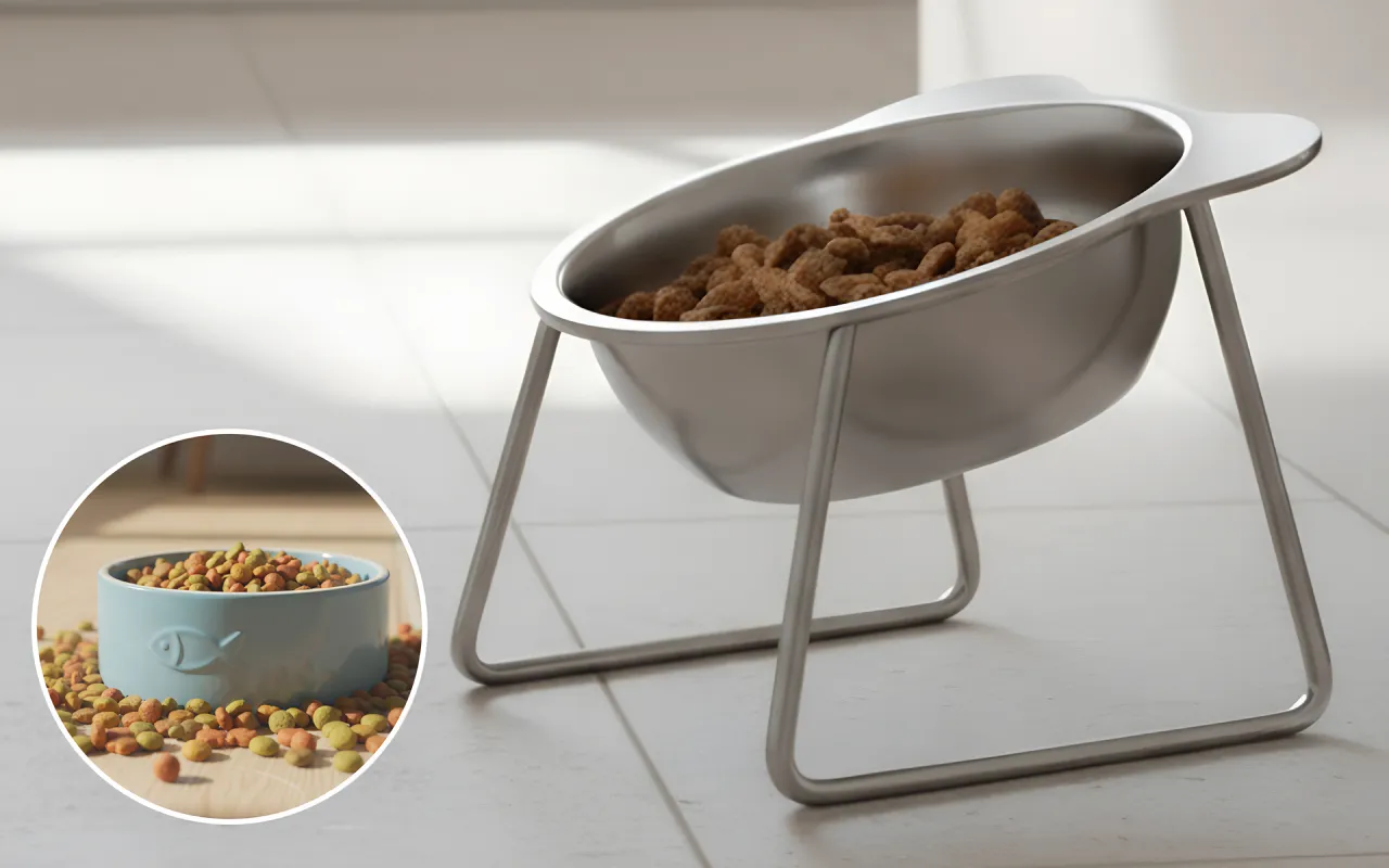 Meine Katze frisst jetzt viel besser. Die geneigte Schüssel macht die Mahlzeiten bequem für ihren Nacken und verhindert, dass Futter überall landet. Die Reinigung ist super einfach.
