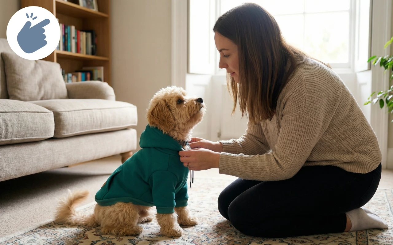 Das Hoodie passt super! Mit der verstellbaren Kapuze geht alles problemlos und mein Hund wird beim Anziehen nicht genervt.