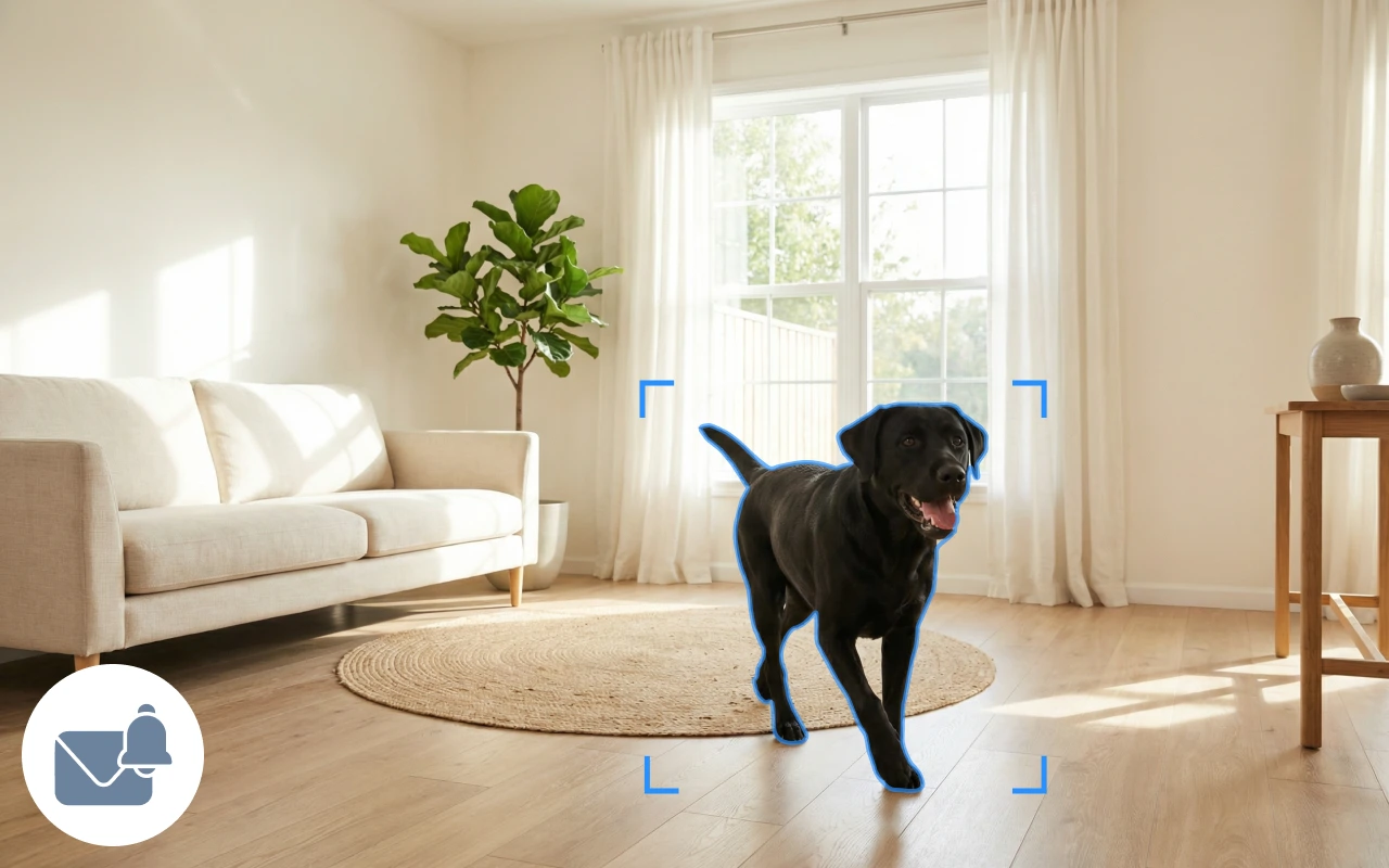 Erhalte sofortige Benachrichtigungen, wenn zu Hause eine Bewegung erkannt wird. Benutzerdefinierte Bereiche verhindern Fehlalarme durch alltägliche Aktivitäten.