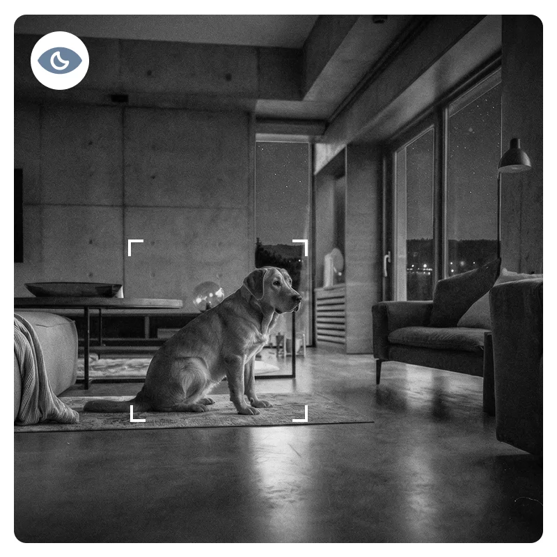 Jeder Moment zu Hause bleibt sicher, egal wo du bist. Primdog Slim schützt Haustiere und geliebte Menschen rund um die Uhr. Du weißt immer, was passiert, selbst bei völliger Dunkelheit. Schnelle Benachrichtigungen stoppen Sorgen, bevor sie zu echten Problemen werden.