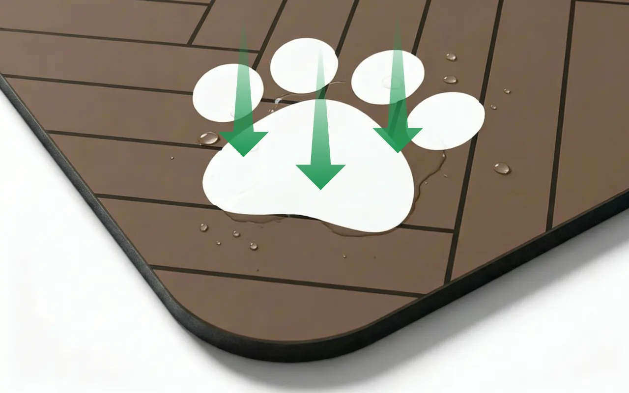 Sie saugt Verschüttetes wirklich schnell auf und sieht unter den Näpfen gut aus. Dank der rutschfesten Rückseite bleibt sie an Ort und Stelle, sogar wenn mein Welpe beim Fressen aufgeregt ist!