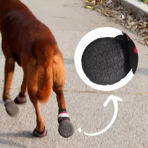 Ich habe die Schuhe meinem Golden Retriever für einen regnerischen Parkbesuch angezogen. Seine Pfoten blieben sauber und der Halt war super, sogar auf rutschigen Wegen.