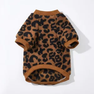 Warmer Winter Hundepullover mit Rundhals und süßem Leopardenmuster