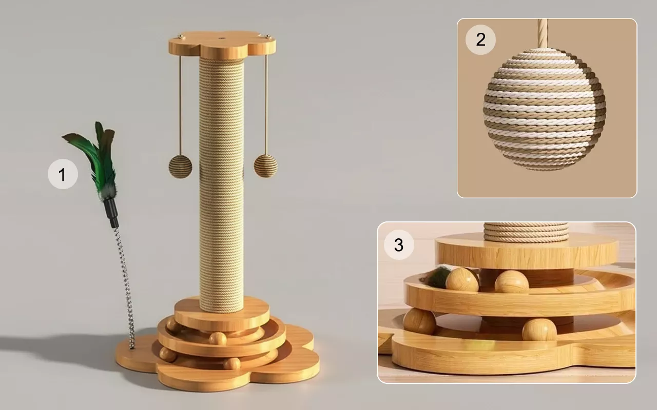 Robustes Holz und Sisal sorgen für eine lange Lebensdauer bei aktiven Haustieren. Kratzen, Klettern und Spielen bleiben jeden Tag sicher.
